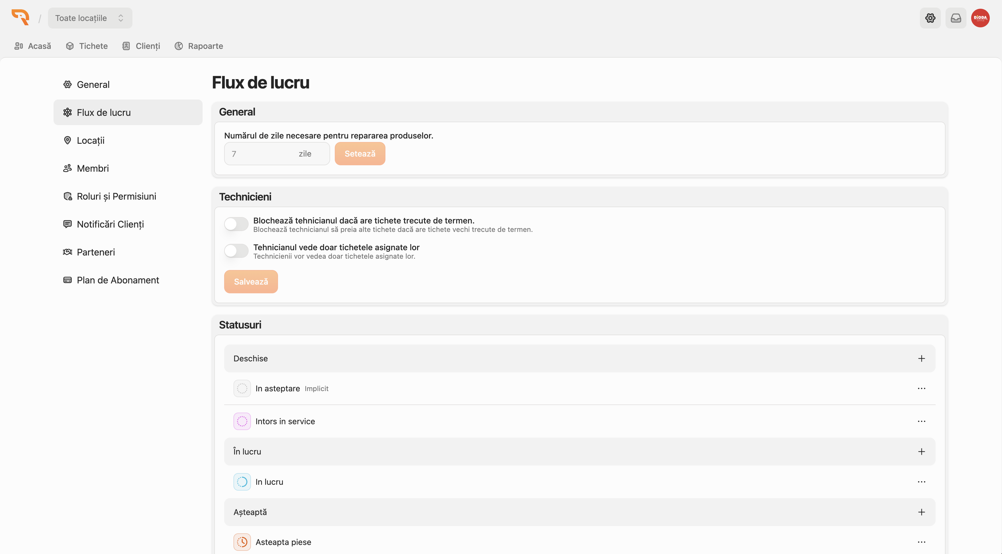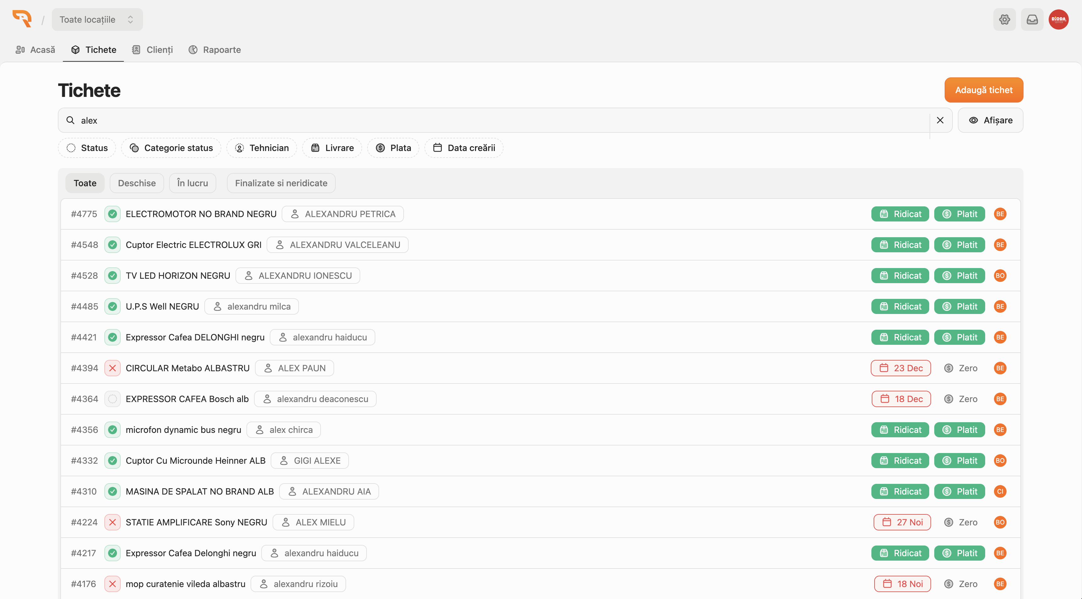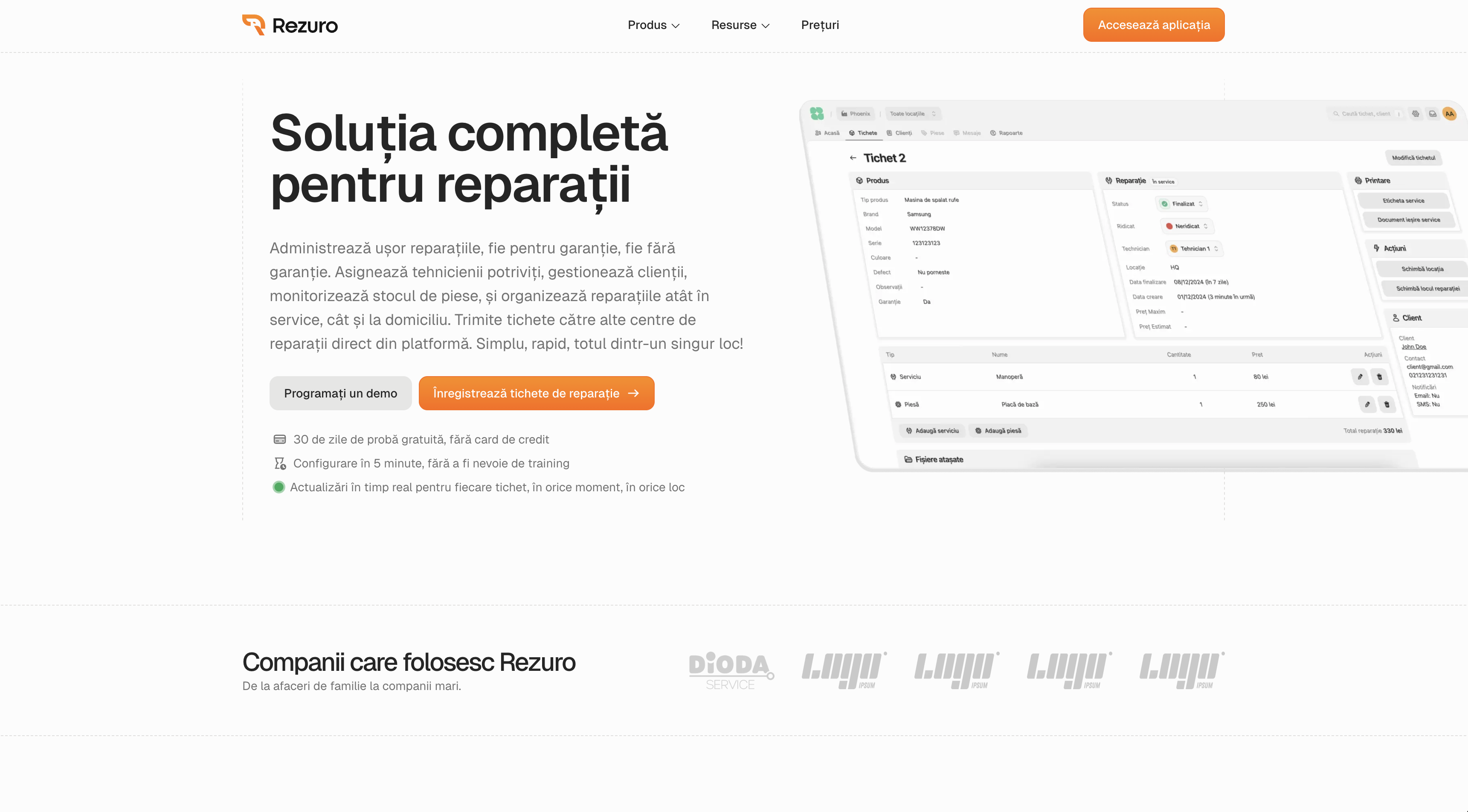 Rezuro este o platformă software creată special pentru service-uri de electronice și electrocasnice, gândită să simplifice întregul proces de preluare, gestionare și finalizare a reparațiilor. Aplicația permite administrarea eficientă a tichetelor de service, urmărirea intervențiilor, organizarea tehnicienilor și gestionarea rolurilor din echipă, totul dintr-un singur loc. De la înregistrarea produselor intrate în service până la actualizarea statusurilor și comunicarea internă, Rezuro ajută firmele să lucreze mai organizat, mai rapid și mai profesionist. Platforma este potrivită pentru ateliere și centre de reparații care au nevoie de un sistem clar de lucru, trasabilitate mai bună și control asupra operațiunilor zilnice. Cu o structură modernă și funcționalități adaptate industriei, Rezuro contribuie la reducerea erorilor, la o mai bună coordonare a echipei și la o experiență mai bună pentru clienți. Pe scurt, Rezuro transformă procesul de service într-un flux digital clar, eficient și ușor de administrat.